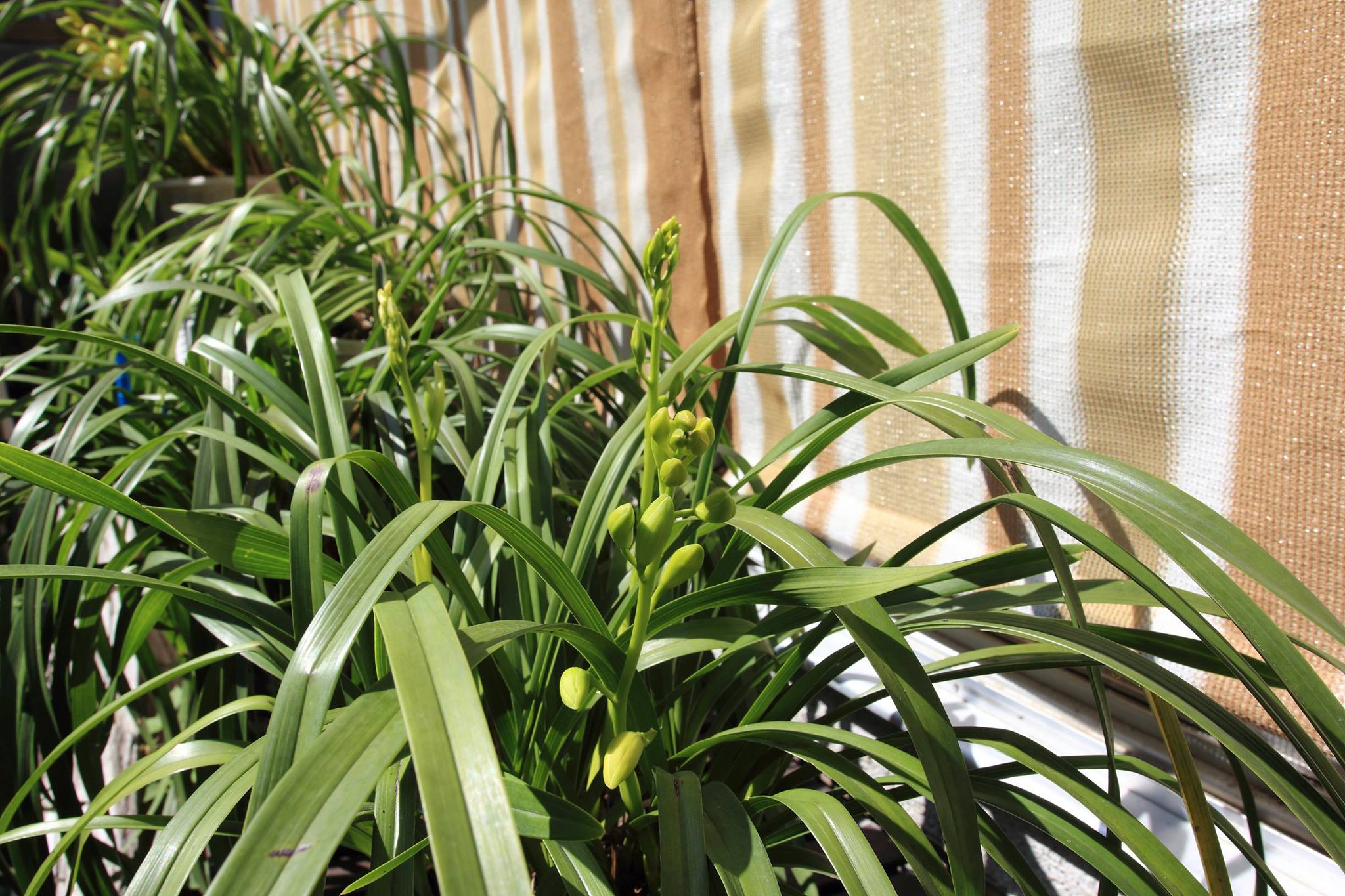 シンビジウムの葉と蕾