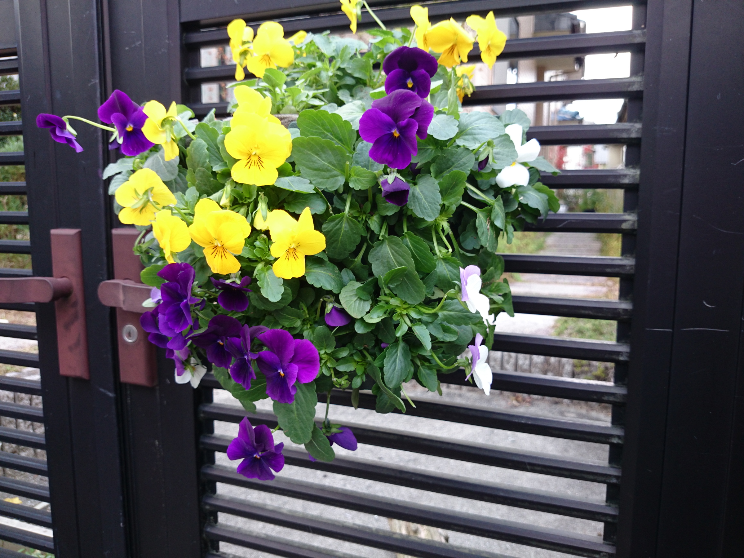 Published 2016年11月29日 at 2400 × 1800 in 横から見たビオラのハンギングバスケット.