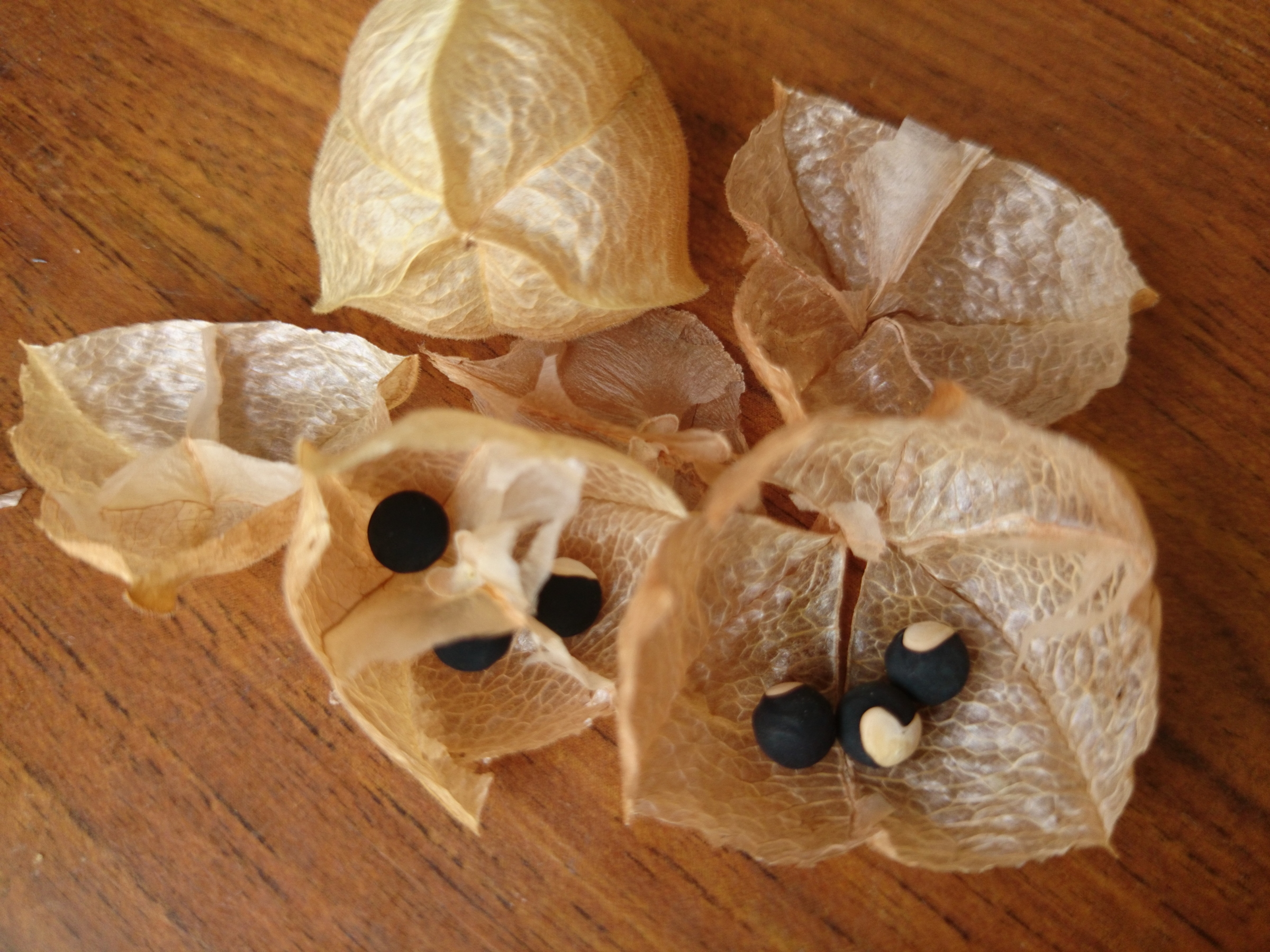 フウセンカズラの種。ひとつの風船に3つの種がはいっています。