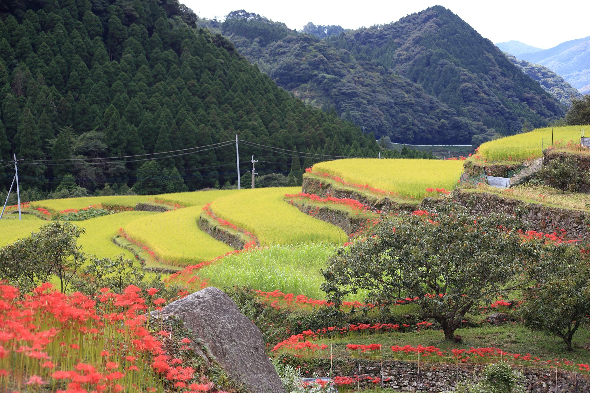 棚田に咲くヒガンバナ
