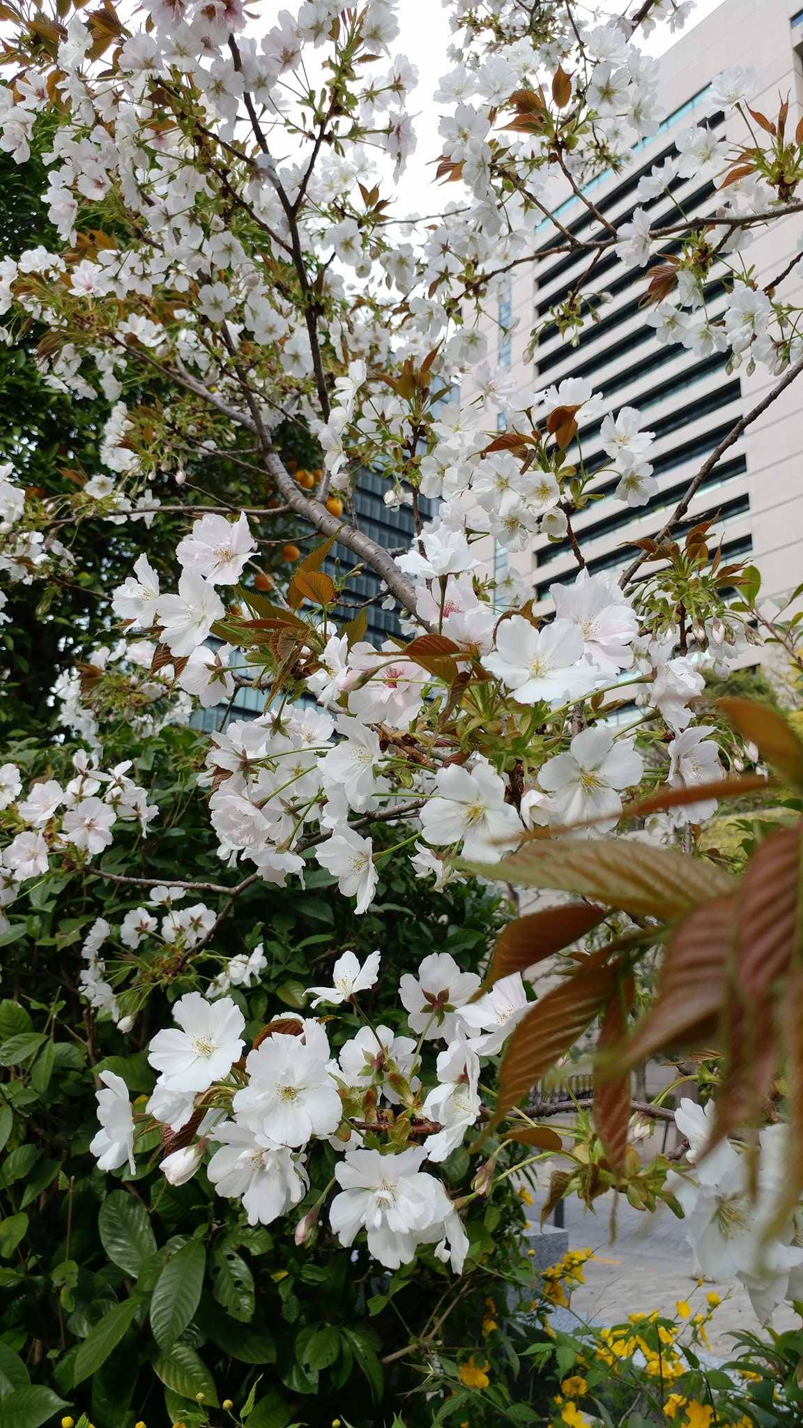 高層ビルに囲まれても清々しい花を咲かせています